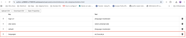 - From AEM Sites console, navigate to WKND Universal > Placeholders.