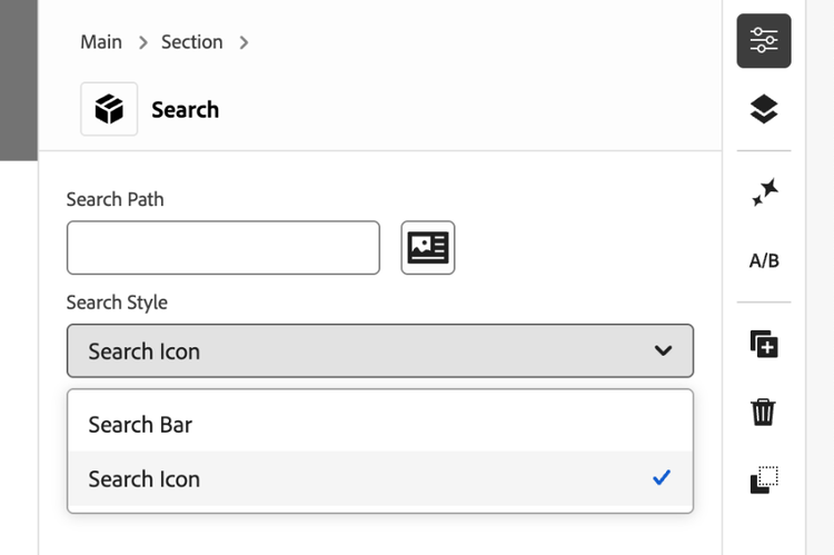 - Search Icon: a small icon; click to open an overlay and press ‘Enter/Return’ to go to the search page.
