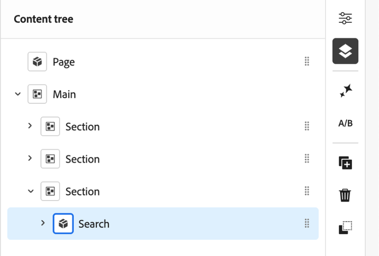 - Insert a ‘Search’ block on any page. You can add this block only under a section block.