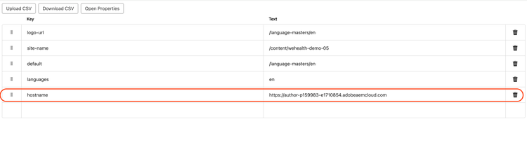 - Update the value of field name hostname with your AEM instance hostname and publish this page.