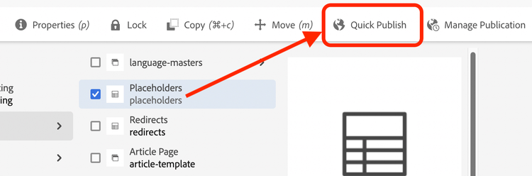 - Make sure to publish the Placeholders page: