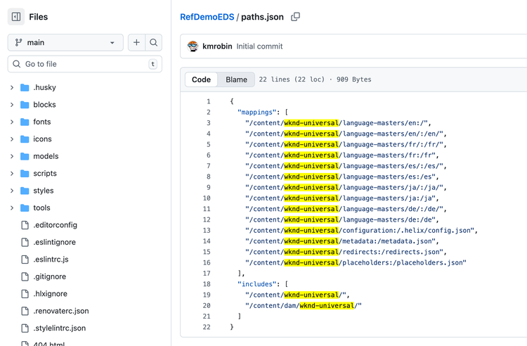 - Replace all occurrences of “wknd-universal” with your brand site name e.g. “abc”.