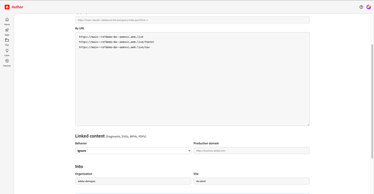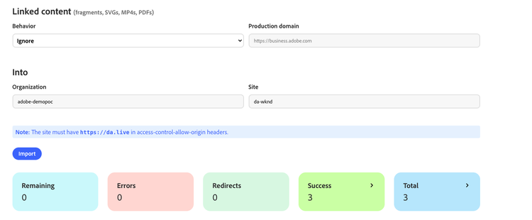 - To create the sample WKND content on your site, head over to DA Importer App.