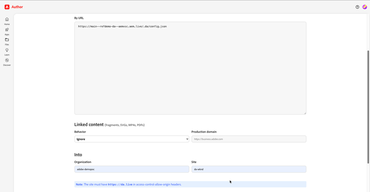 - https://main--refdemo-da--aemxsc.aem.live/.da/config.json