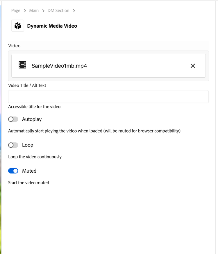 - Add “Dynamic Media (Video)” block to your page and edit block’s properties.