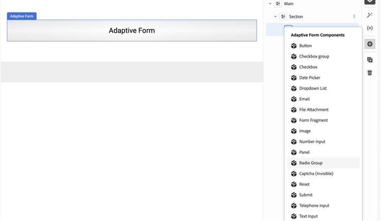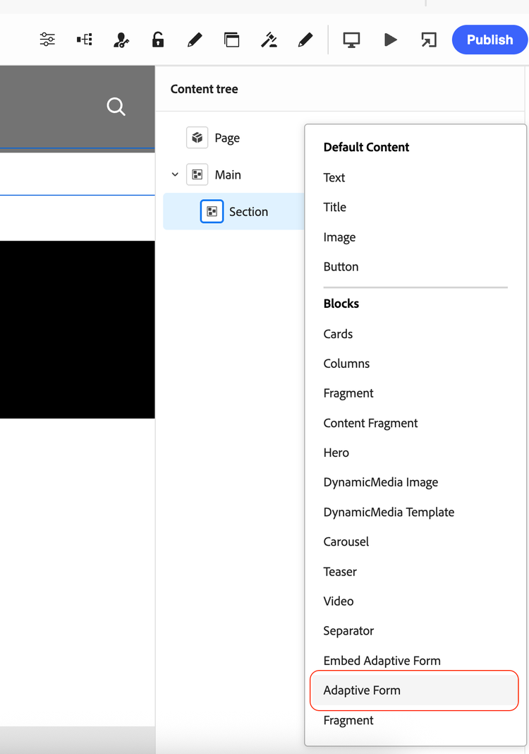 - Once Adaptive Form start appearing in your content tree. Select the Adaptive Form option and click on