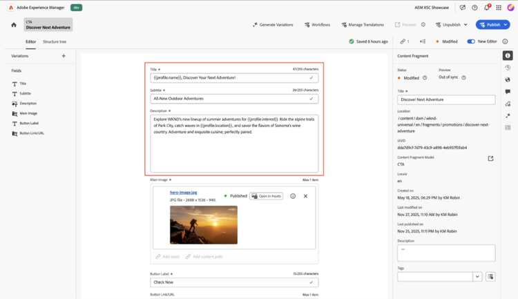 - Go to the CTA Offer Fragment you want to personalize in your brand’s folder.