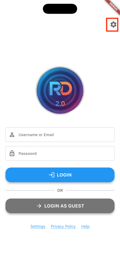 - In the mobile app, once in the home screen click on the top-right corner (gear-icon) to head to the settings menu.