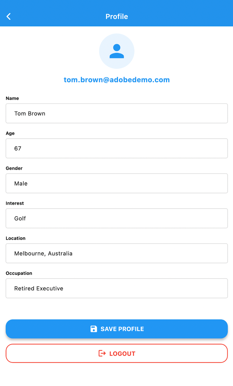 - Now, let’s login using an email from the profiles available in RT-CDP