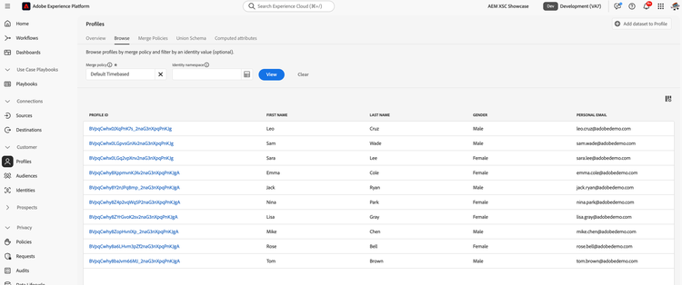 - Go to Experience Platform > Profiles