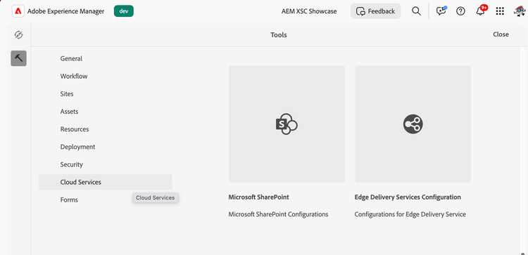 - In your AEM Environment, from start screen, navigate to Tools > Cloud Services > Edge Delivery Services Configuration